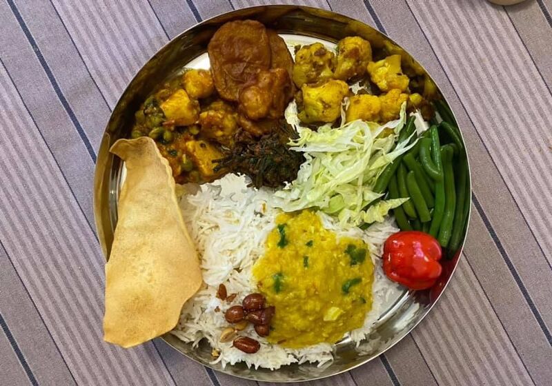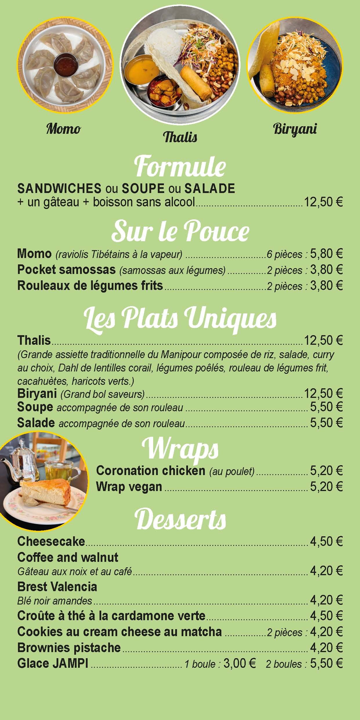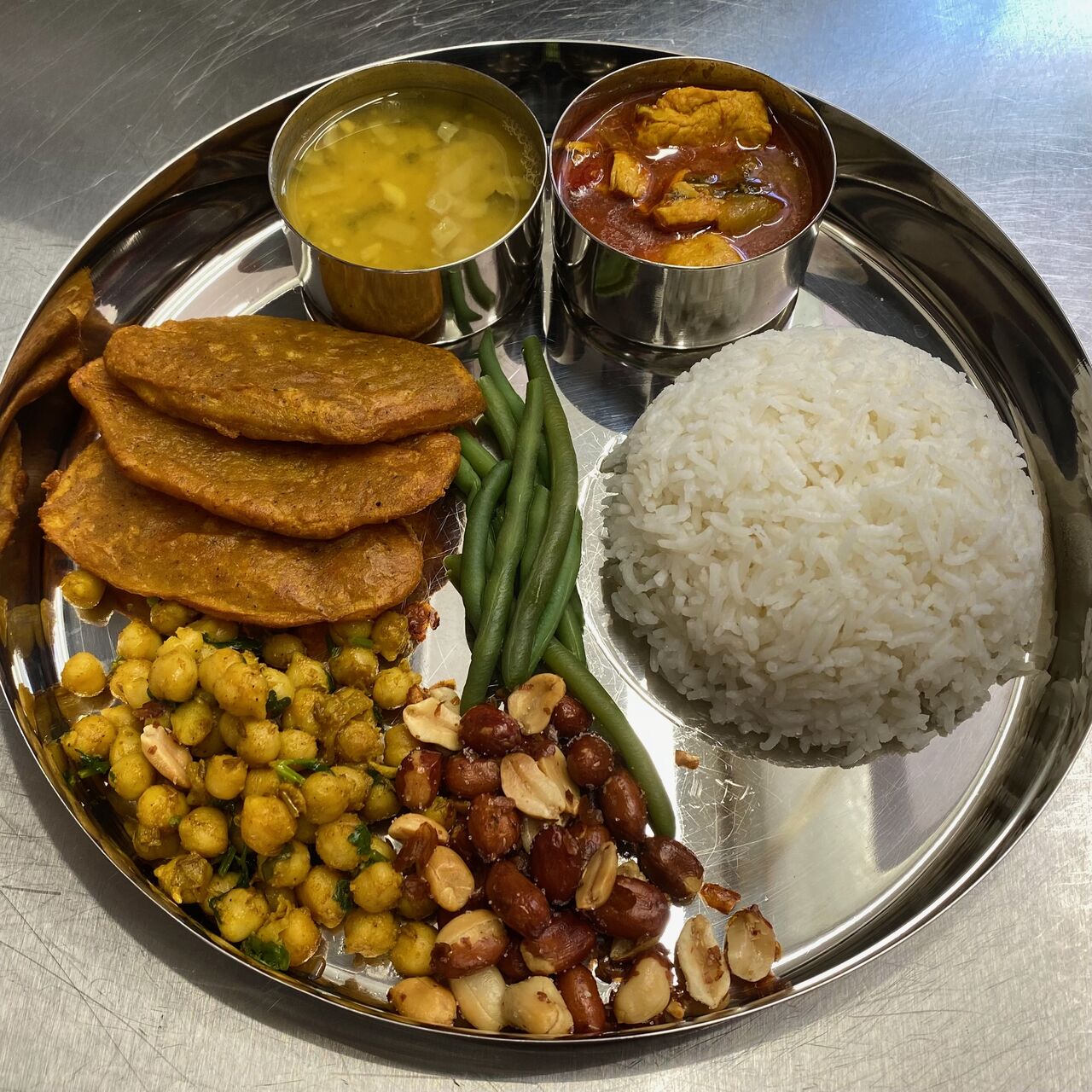 Pendant le déjeuner, nous servons des Momos faits maison - des ravioli originaires du Tibet adoptés partout en Inde. Ils sont servis avec leur sauce épicée et une version plus douce. Outre les Momos, nous proposons également des bols de riz traditionnels avec accompagnements - inspirés des saveurs du nord-est de l'Inde. Options végétariennes et non végétariennes disponibles chaque jour.